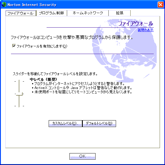 ここではノートンインターネットセキュリティ2003を例にします。
